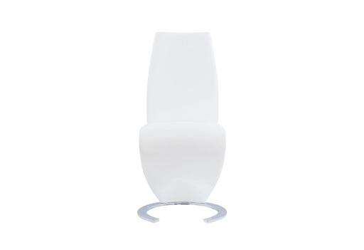 Global Furniture USAWith a Z-Shape design and horse shoe shaped base this dining chair will liven up your contemporary home. This sturdy chair is finished in a white P...