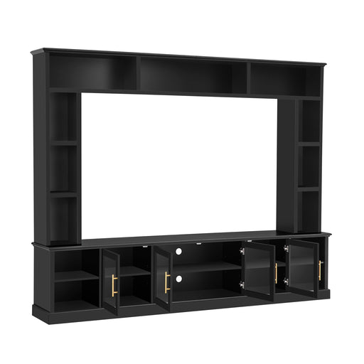 Wall Unit Entertainment Center With Bookshelves For TVs Up To 80", Tempered Glass Doors And Adjustable Shelves