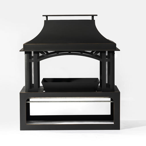 40" Wood Burning Fireplace, 50000 Btu Steel Fire Pit, Wood Burning Chimney For Outside Patio Deck Garden Backyard - Black