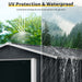 • Included Accessories: Comes with a metal foundation frame, anchors, hooks, a shelf, a locker (padlock), and gloves. Made of electro-galvanized steel with strong corrosion and UV resistance.