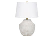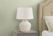 - Modern Design: Features a classic urn-shaped base with a cream concrete textured finish and an ivory linen tapered drum shade.