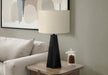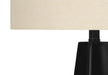 - Modern Design: Features a sleek black resin triangular base, beige linen drum shade, and gold finial, perfect for contemporary living spaces.