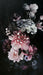 A lavish arrangement of blush and violet blooms set against a dramatic black background for modern elegance and floral allure.