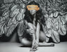 Boldly modern angelic portrait with black-and-white wings, hand-embellished with gold brushstroke detail for a dramatic, ethereal touch.