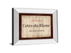 Step into the refined world of French wine with this elegant Cotes-du-Rhone framed wall art. The design features a classic wine label set against a warm, textured backdrop in shades of brown, beige, and cream, accented by rich red and black tones that evoke a timeless charm. Surrounded by a sleek 2.5-inch mirrored frame, this piece not only adds a touch of sophistication but also reflects light to brighten your living room, kitchen, or dining area. Crafted with premium real glass for crystal-clear protection, it’s ready to hang and brings a luxurious shimmer to your space while celebrating the heritage of France’s celebrated wine region.