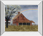 Step into a tranquil countryside scene where a weathered red barn stands strong beneath a soft spring rain, its roof sheltering memories of simpler times. A delicate tree in bloom and scattered wildflowers add gentle touches of life and hope, while a radiant rainbow arches gracefully across the muted gray sky, promising renewal and brighter days ahead. Framed in a sleek mirrored border, this piece blends rustic charm with modern elegance, making it a perfect addition to any living room or office seeking a peaceful, inspiring focal point.