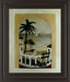 Step into a tranquil coastal escape with this captivating oil painting, where a serene seaside view unfolds through an elegant archway. Palm trees sway gently beside charming seaside homes, while sailboats drift peacefully across calm waters in the distance. The dark chocolate frame adds a touch of sophistication, enhancing the artwork's warm beige and brown tones. Perfect for living rooms or offices, this framed piece invites you to pause and savor the peaceful elegance of a quiet island retreat, bringing a timeless sense of calm and relaxation to your space.