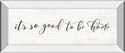 Embrace the comforting embrace of home with this beautifully framed wall art that declares, “It’s So Good To Be Home.” The elegant black script flows gracefully across a whitewashed wood background, evoking a sense of peace and belonging. Surrounded by a sleek 2.5-inch mirrored frame, this piece reflects light and adds a contemporary shimmer to any living room, bedroom, or entryway. Crafted with premium real glass, it ensures durability while enhancing the artwork’s crisp details. Expertly assembled and ready to hang, this mixed media creation blends modern style with heartfelt inspiration, making it a perfect statement piece to welcome warmth and joy into your space.