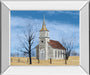 Immerse yourself in the tranquil charm of rural life with this beautifully framed depiction of a classic prairie church. Set against a vast blue sky, the artwork captures the quiet solitude of golden fields and bare trees, evoking a deep sense of nostalgia and peace. Encased in a sleek mirrored frame, this piece not only reflects light to brighten your space but also adds a touch of modern elegance to its traditional subject. Perfect for living rooms or offices, it offers a timeless blend of architectural grace and serene countryside beauty, inviting you to pause and appreciate the simple, enduring moments of Americana.