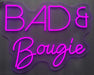Illuminate your space with the captivating “Bad & Bougie” neon typography wall art. This contemporary piece combines acrylic craftsmanship with vibrant neon lighting, delivering a bold statement that energizes any room. Powered by a plug-in connection with a convenient on/off switch, this artwork offers a permanent glow—perfect for living rooms, beauty salons, boutiques, or lounges. Arriving fully assembled with professional mounting hardware, it’s ready to elevate your décor with a touch of edgy sophistication and luminous charm.