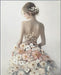 A graceful bridal portrait capturing the elegance and beauty of saying yes to the dress, adorned with delicate floral details.