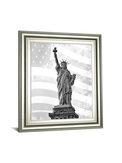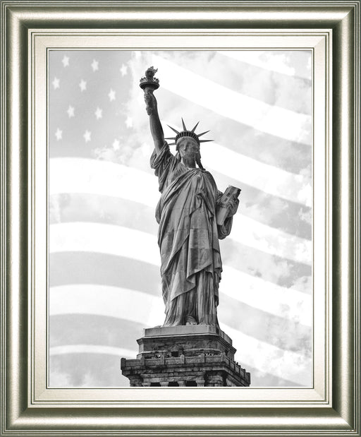 Classy LivingThis striking framed wall art captures the Statue of Liberty in a timeless black-and-white photograph, layered with a subtle American flag that whi...