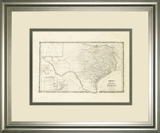 New Map Of The State Of Texas By Johnson And Wank - Mirror Framed Print Wall Art - White