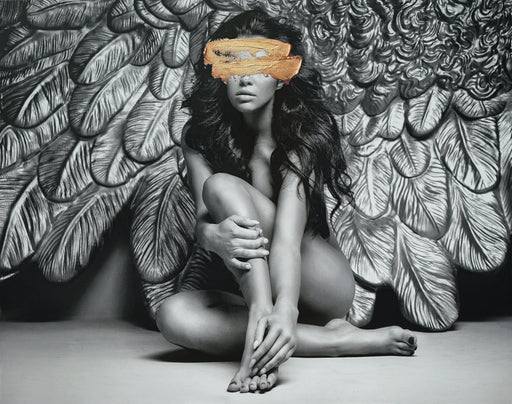 Classy LivingBoldly modern angelic portrait with black-and-white wings, hand-embellished with gold brushstroke detail for a dramatic, ethereal touch.Product Fea...