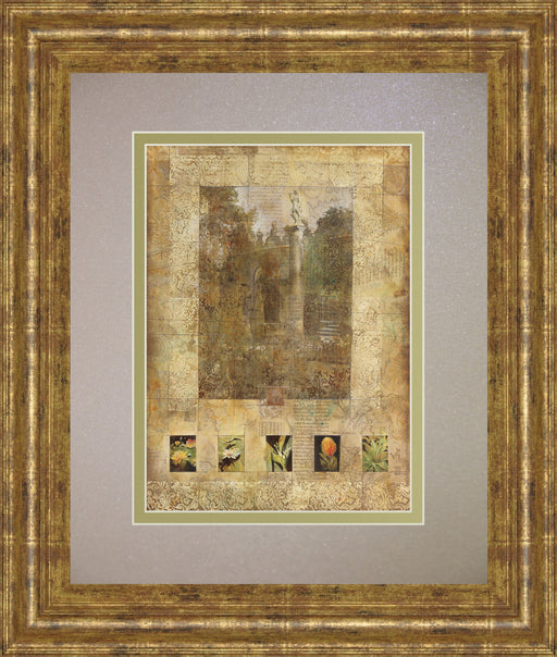 Classy LivingStep into a serene garden where history and nature intertwine in this captivating piece. Soft, muted tones of beige, gold, and green create a vinta...