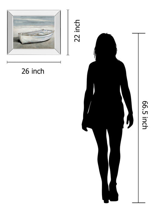 Classy LivingThis evocative piece invites you to a quiet moment by the shore, where a lone rowboat rests gently on the sand. Painted in soft shades of gray, ivo...