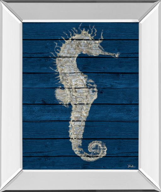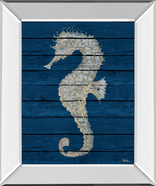 Antique Seahorse On Blue Il By Patricia Pinto - Mirror Framed Print Wall Art - Blue