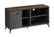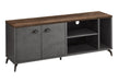 - Industrial Design: This TV stand features an industrial style with a unique faux concrete finish complemented by a reclaimed wood-look. It's accentuated with sleek, angled legs and a stylish metal cup pull cabinet door handle.