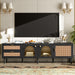 Rattan TV Stand With 3 Cabinets & 2 Drawers, Rattan-Inspired Media Console Table For Tvs Up To 80'', LED Light Entertainment Center, TV Cabinet For Living Room - Black