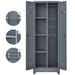 Metal Storage Cabinets, Cleaning Tool Cabinet With Locking Door, Tall Broom Tool Organizer And Storage, Large Storage Cabinet For Kitchen - Gray