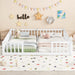 Double Twin Floor Bed With Fence, Guardrails, Without Door - White