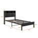 Twin Size Metal Platform Bed Frame With Storage Headboard And Charging Station - Black