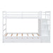 Twin Over Twin Bunk Bed With Trundle And Staircase - White