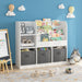 Bookcase And Bookshelf With 3 Collapsible Drawers, Multifunctional Display Stand For Bedroom, Playroom - White / Gray