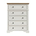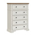 Create an inviting sanctuary with the beautifully crafted Eastwood collection that exudes timeless charm and elegance. The two-tone design with rich brown top adds depth and sophistication to this case piece. Experience practicality with a felt-lined top drawer for delicate items, smooth ball-bearing drawer guides, and durable French dovetail construction. With added safety from an anti-tipping kit, this chest from the Eastwood collection blends intricate detail, functionality, and durability for an enchanting bedroom experience.