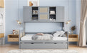 Full Size Wooden Daybed & Twin Size Trundle, And All In One Cabinet And Shelf - Gray