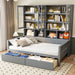 Full Size Daybed With Glass Door Storage Cabinets, Built In LED Lighting And Shelves - Gray