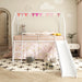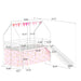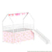 Jack - House Twin Loft Bed With Slide And Curtain Set - White / Pink