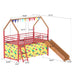 - Playful Design with Slide & Accessories: Transform your child' room into a fun-filled haven with a house-shaped bunk bed, complete with a built-in slide, luminous star stickers, a pennant banner. The lower bed includes a curtain for a cozy, private space.