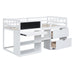 Twin Size Low Loft Bed With Rolling Desk, Shelf And Drawers - White