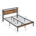 Full Size Metal Platform Bed Frame With Wooden Headboard And Footboard With USB Liner, No Box Spring Needed, Large Under Bed Storage - Brown