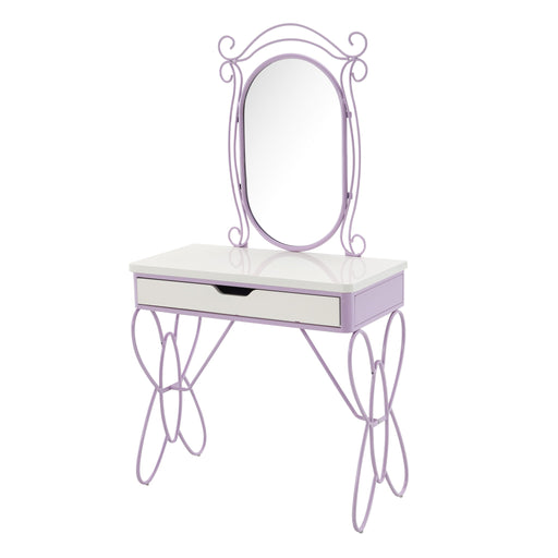AcmeElegant Butterfly Design: The vanity set showcases intricate butterfly motifs on its metal base and mirror trim, adding a delicate and artist...
