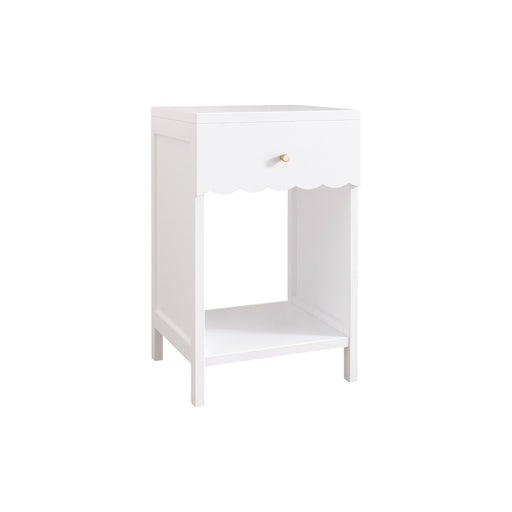 Nightstand With Drawer And Open Shelf, Scalloped Edge Bedside Table For Bedroom - White