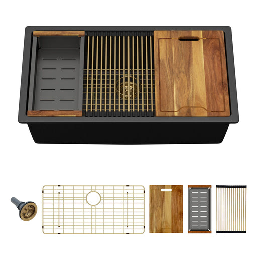 Premium Single Bowl Undermount Workstation Kitchen Sink With Accessories, Finish, 16 Gauge Stainless Steel - Black