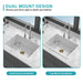 • Dual Mount Installation: Compatible with undermount and top mount setups for flexible integration with various countertops