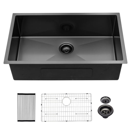 28" Undermount Kitchen Sink 16 Gauge 10" Deep Single Bowl - Gunmetal Black