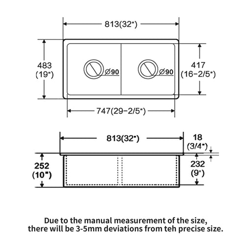 Sink 33" Double Bowl Apron Front Kitchen Sink 50 / 50 - White