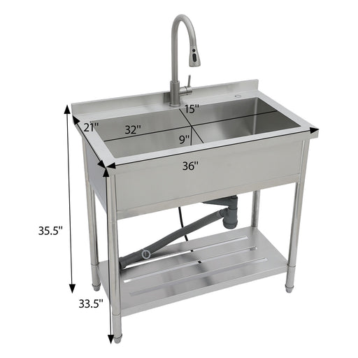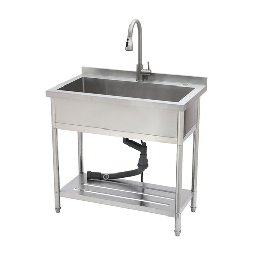 Stainless Steel Freestanding Utility Sink With Pull Out Faucet, Large Single Bowl - Brushed Nickel