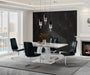 Elevate your dining room with this elegant contemporary dining table. Featuring a sleek marble-inspired top and base, oval design, and stylish chrome accents, it's perfect for creating a warm and inviting atmosphere for your guests. Upgrade your entertainment space with this charming and sophisticated piece.