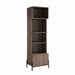 - Design Features: This kitchen display storage cabinet features four open shelves and a one-door cabinet with a cutout handle. It is designed to hold a microwave up to 20"W x 14"D, offering both functionality and style for your kitchen space.