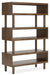 This bookcase combines modern design with practical storage, featuring a warm brown oak wood-tone finish that highlights your books and decor. Crafted from hardwood solids, oak veneer, and MDF substrate, it offers durable construction. The geometric, retro-inspired layout creates six shelves from three storage boxes stacked with round posts, providing versatile organization for your home office. Assembly is required to complete this stylish and functional piece.