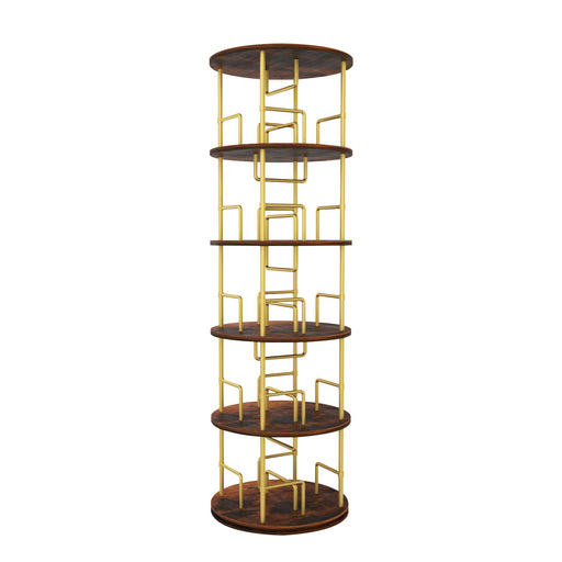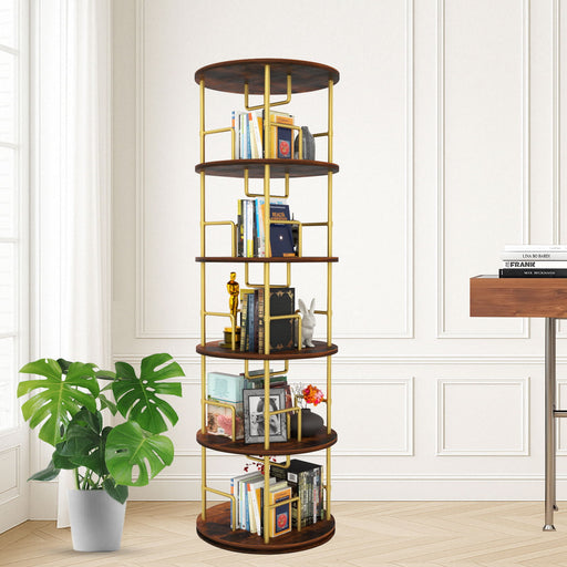 5 Tier 360 Rotating Bookshelf, Display Round Floor Standing Swivel Bookcase For Bedroom - Golden