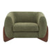 Modern Upholstered Boucle Arm Chair With Tuxedo Design And Unique Triangular Legs - Olive Green / Walnut