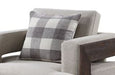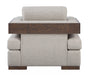 - Elegant Design: This chair features a stunning two-tone fabric pattern, making it a stylish addition to any modern living space. Its track armrests with wood trim and wide block legs in a walnut finish add sophistication and timeless appeal.
