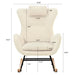 Rocking Chair Nursery, Teddy Upholstered Rocker Glider Chair With High Backrest, Adjustable Headrest & Pocket, Comfy Glider Chair For Nursery, Bedroom, Living Room, Offices, Rubber Wood - Beige