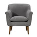 - The Shelby armchair has the clean-line silhouette for the minimalist and the mid-century modern style for any home. The round recessed arms and plush full foam seat cushion gives the comfort and support you need to relax in. Featuring durable quality woven fabric and sturdy wooden legs. Ideal for any living space whether it be for your bedroom, living room, or office space for you or your guest to enjoy. Also available in other colors to complement your home dcor.